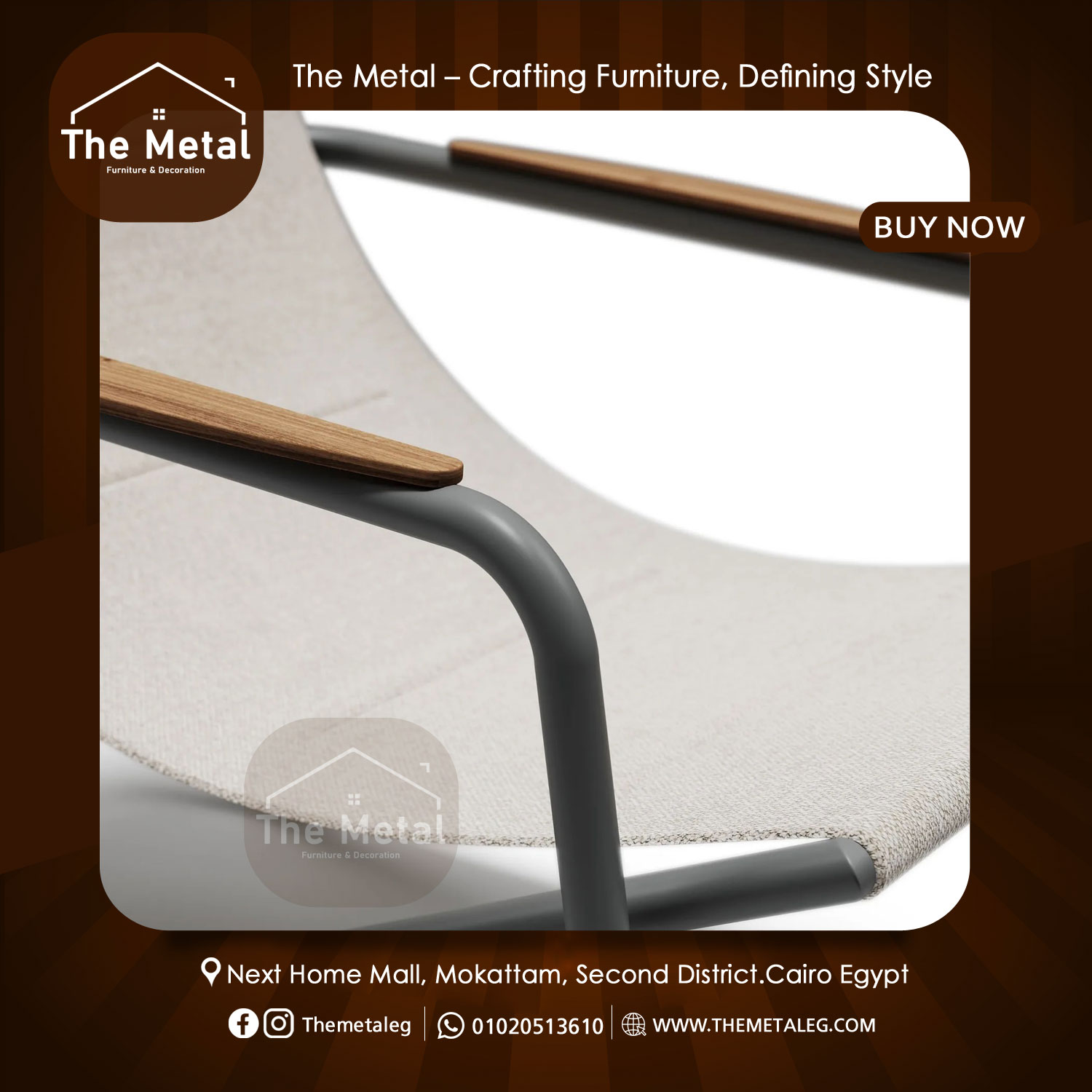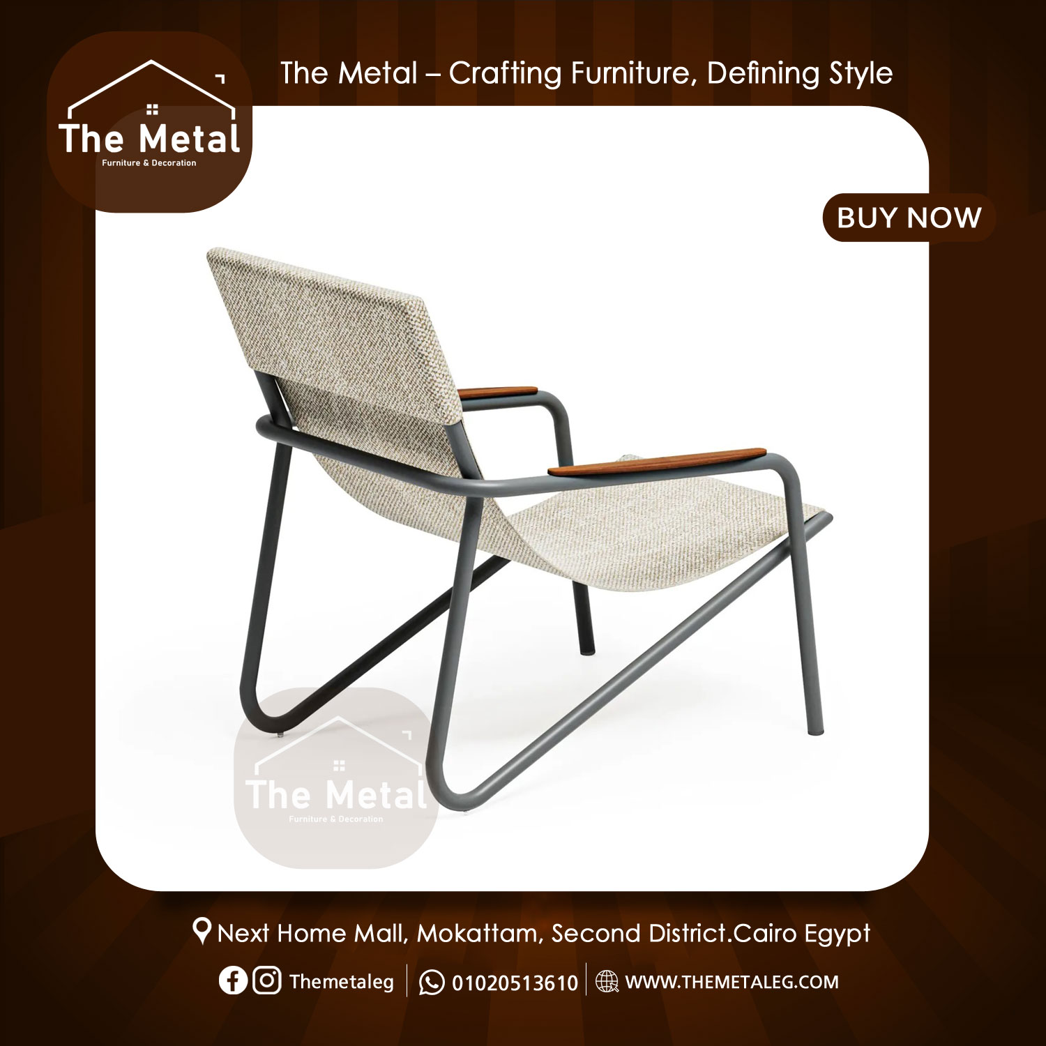 The metal signature chair from The Metal represents the core identity of the brand, combining contemporary aesthetics with industrial-grade durability. This metal signature chair features a sleek architectural silhouette crafted from premium metal tubing made of iron or aluminum, delivering exceptional strength while remaining visually lightweight. Available in refined finishes such as polished chrome, matte black, graphite, or antique copper, it adapts effortlessly to modern interiors and upscale outdoor settings. The seat and backrest are offered in multiple configurations, including perforated metal for a bold industrial look, natural wood for added warmth, or plush upholstery for enhanced comfort. Designed for heavy-duty daily use, the chair is easy to clean and equipped with floor-protection pads for added practicality. Ideal for dining spaces, creative offices, waiting areas, or terraces, this chair is a timeless statement piece. Priced at EGP 6,563, it delivers iconic design with uncompromising quality.
