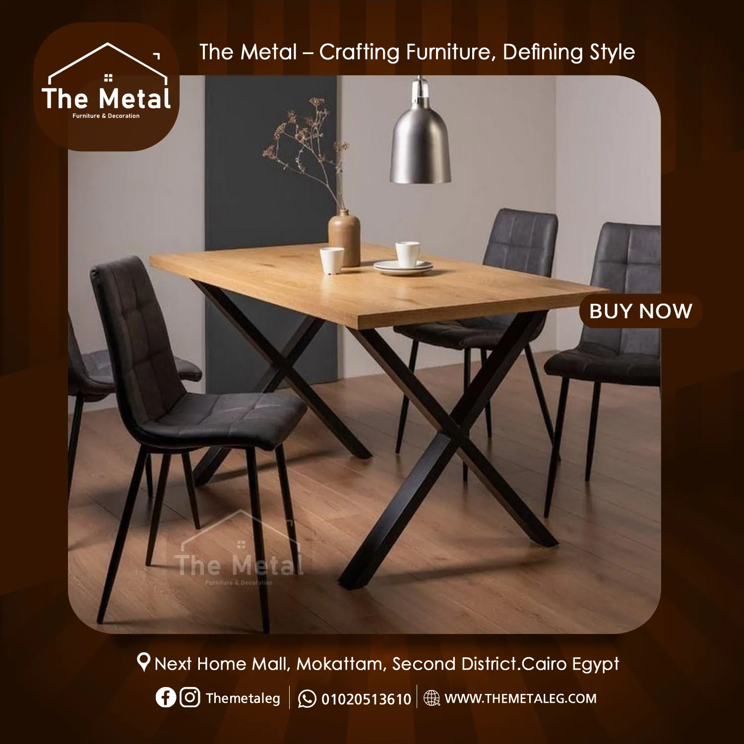 - The Taman Dining Table from The Metal Egypt is a beautifully crafted piece designed for style, durability, and daily functionality. Made from solid wood and supported by a sturdy X-shaped metal base, the Taman Dining Table offers exceptional strength and stability while maintaining a modern and elegant appearance.