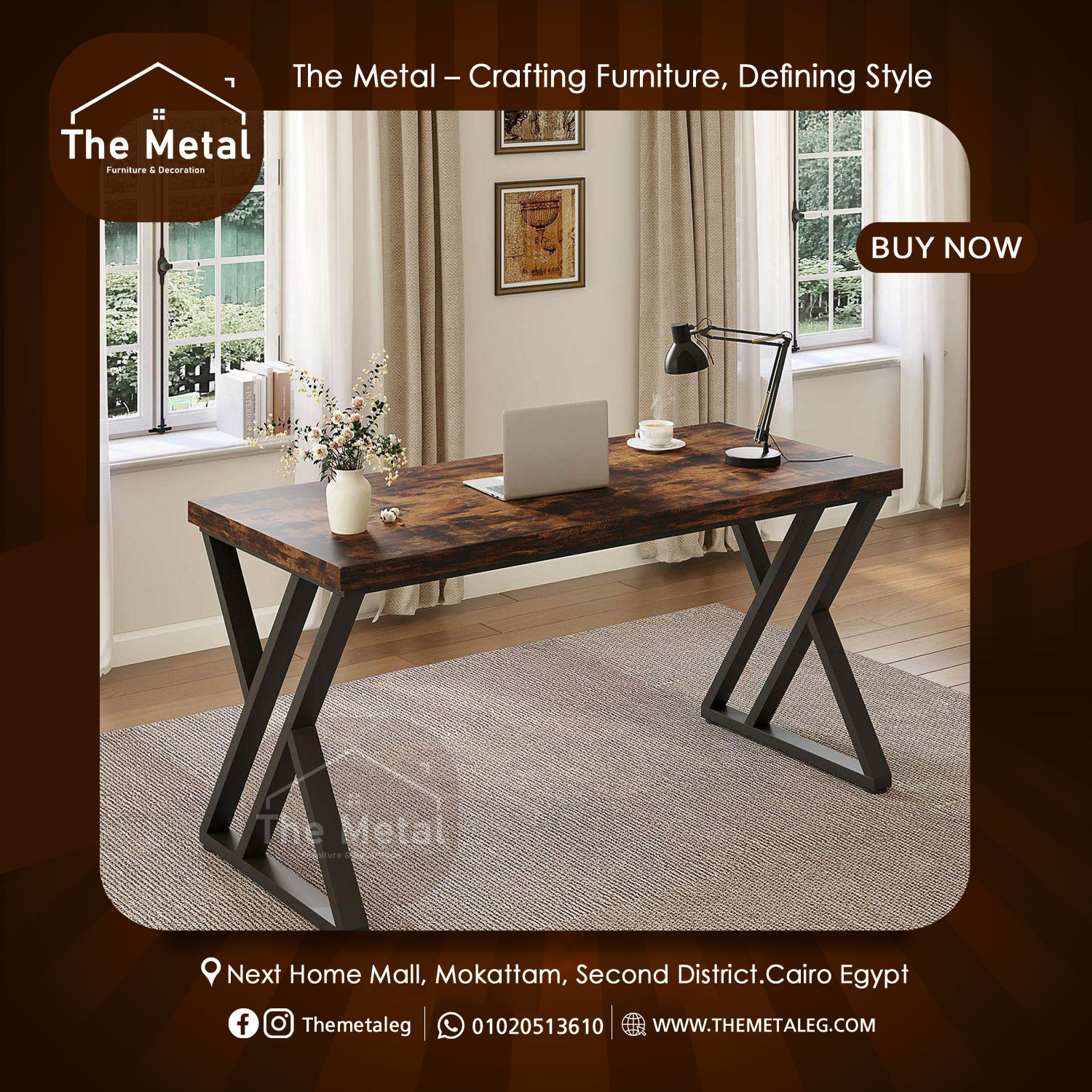 مكتب كمبيوتر خشبي ومعدني بتصميم صناعي جذاب يناسب المكاتب المنزلية والمساحات العصرية. يتميز بسطح مصنوع من الخشب الطبيعي مع هيكل معدني قوي يوفر الثبات والمتانة للاستخدام اليومي. يمنح التصميم الريفي للمكتب لمسة ديكورية مميزة، بينما توفر أبعاده 60 × 120 سم مساحة مثالية للعمل، الدراسة، ووضع الأجهزة والملفات.